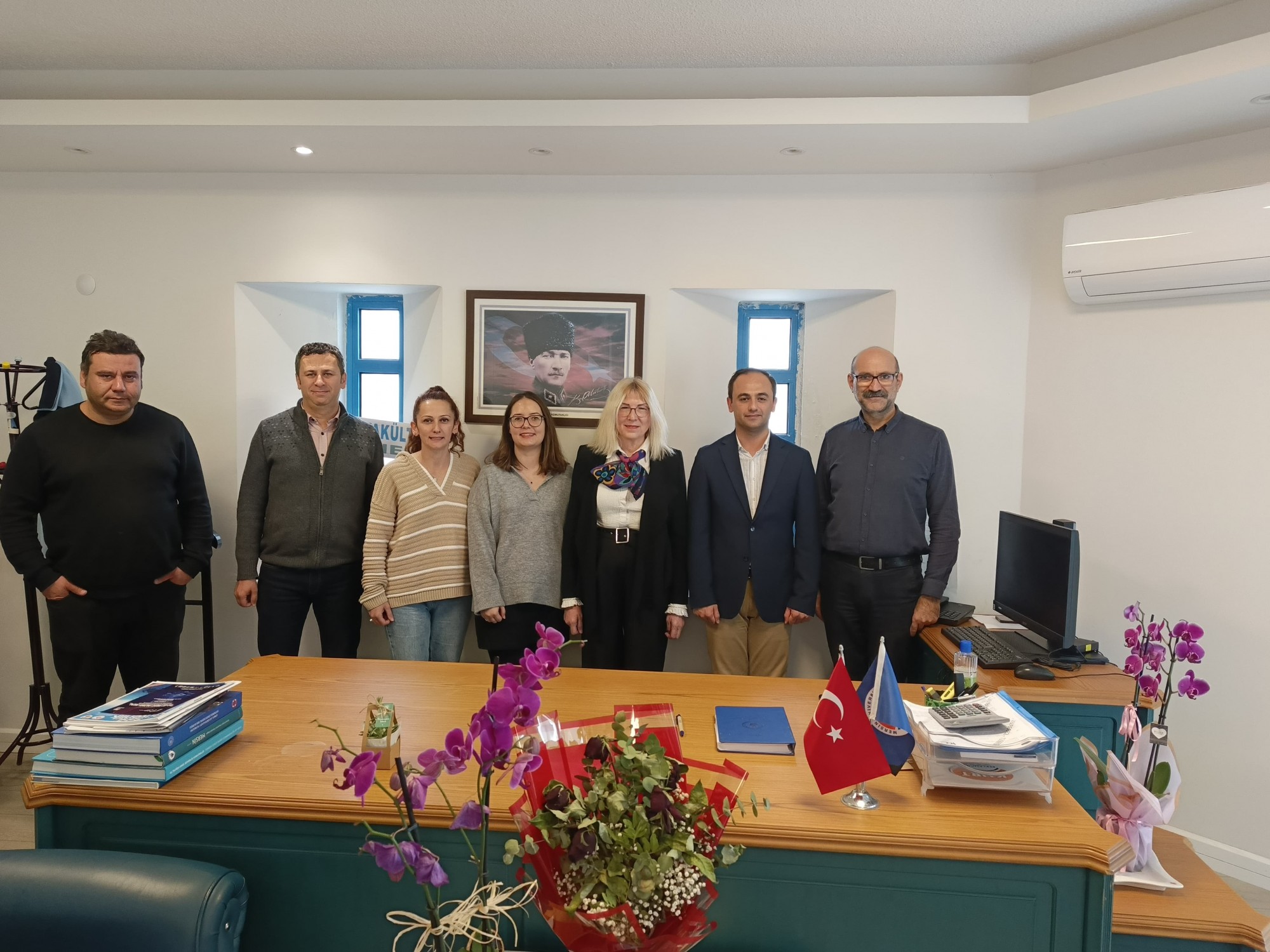 Fakültemiz Dekanı Prof. Dr. Nur Jale ECE, Dekan Yardımcılarımız Doç. Dr. Ünal ÖZDEMİR ve Doç. Dr. Erdem AKKAN, Fakülte Sekreterimiz İbrahim KOÇ ve Gemi Makinaları İşletme Mühendisliği öğretim elemanlarından Arş.