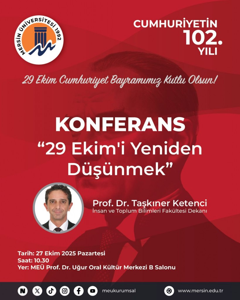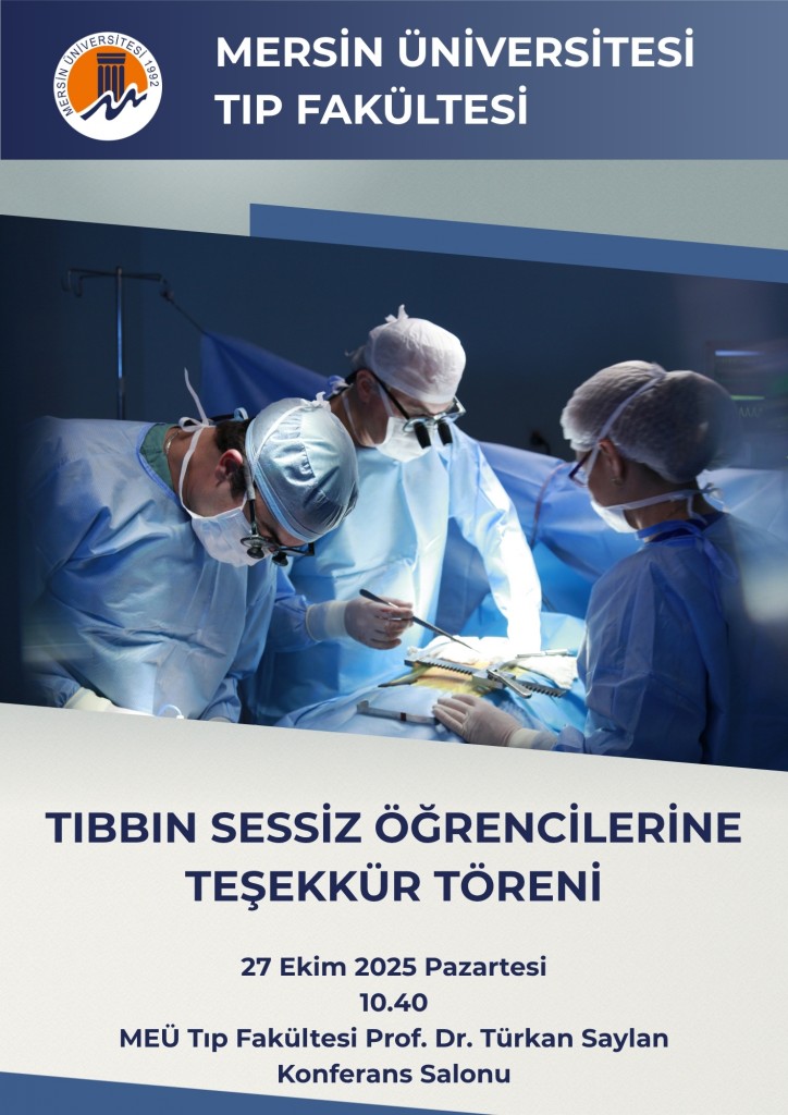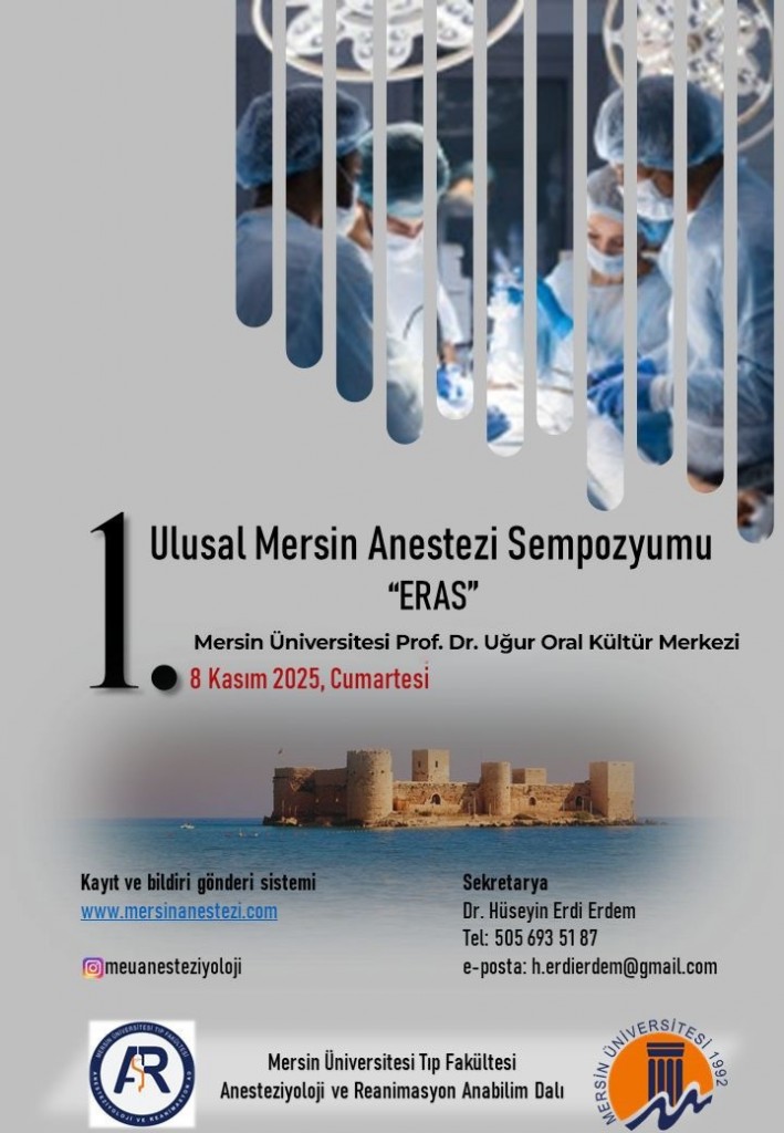 8 Kasım 2025 tarihinde Üniversitemiz Tıp Fakültesi, Anesteziyoloji ve Reanimasyon Anabilim Dalımız tarafından Mersin Üniversitesi Prof. Dr. Uğur Oral Kültür Merkezi'nde gerçekleştirilmesi planlanan